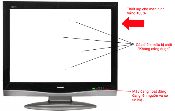 Trên màn hình có một hoặc nhiều điểm mầu không thay đổi được độ sáng trong mọi hoàn cảnh. - Phương pháp kiểm tra: